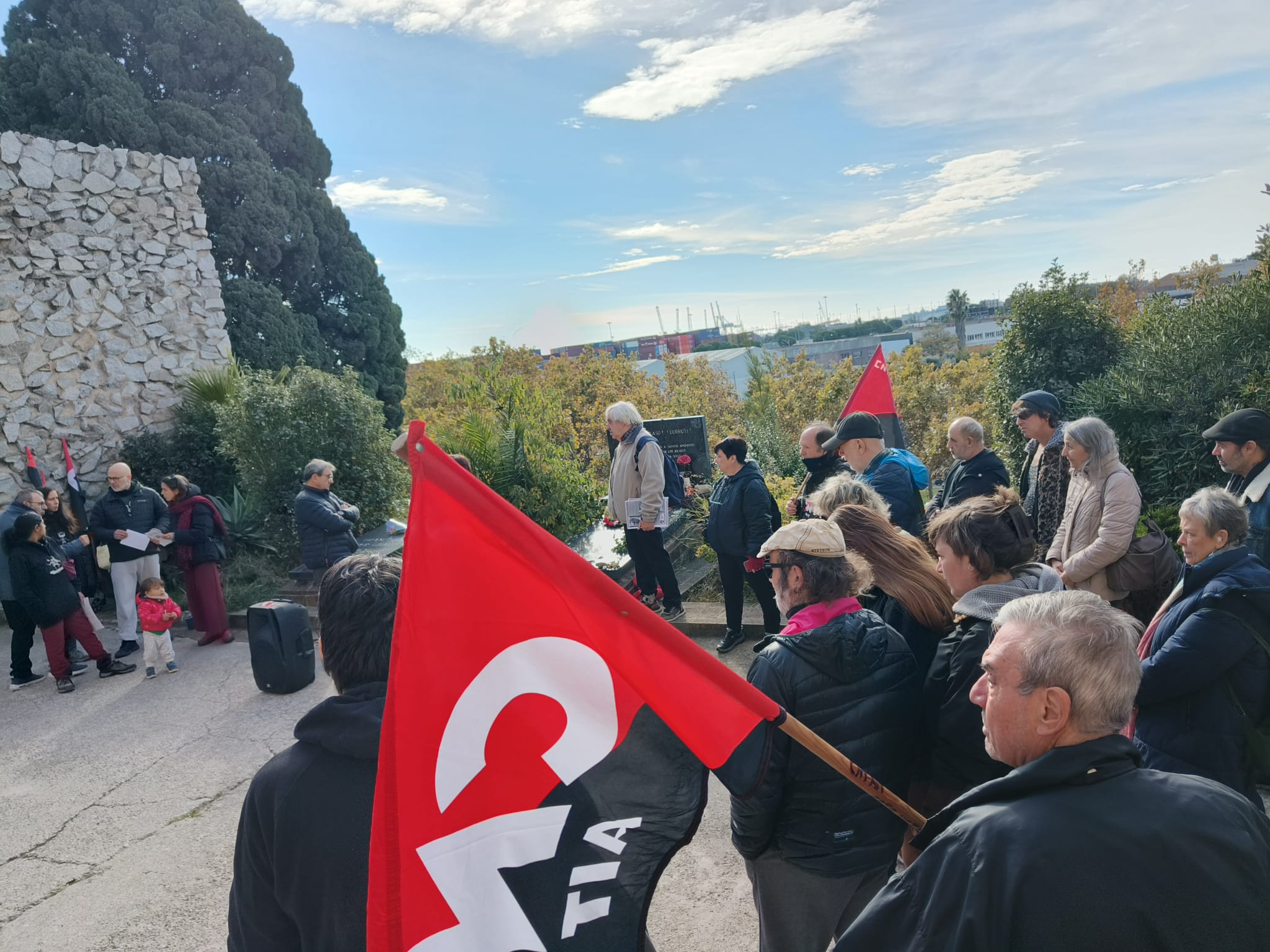 Parmi les quelques 80 personnes présentes, la CNT-AIT était largement représentée, il y avait aussi une délégation de la CGT de Barcelone. Les représentant.es de ces deux organisations ont pris la parole, tout comme l’ont fait d’autres intervenant.es. Parmi celles-ci Manel Aisa Pàmpols auteur de nombreux ouvrages sur la mémoire du mouvement anarchiste et Ricard de Vargas Golarons, ancien militant du MIL et historien. Les membres du Collectif Arcadia ont engagé un dialogue imaginaire avec le pédagogue Ferrer i Guàrdia (exécuté en 1909) lui demandant des « conseils » et lui faisant part de leur expérience d’école libertaire. D’autres participant.es ont exposé leurs idées sur la situation actuelle, lu des poèmes ou entonné des chansons. Testimonial ? On peut le penser, mais cela n’a pas été notre sentiment. Nous y avons vu manifestation d’échange et d’affirmation libertaire. Cela nous a permis de renouer des contacts avec quelques compagnon.ne.s.